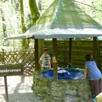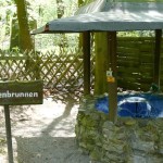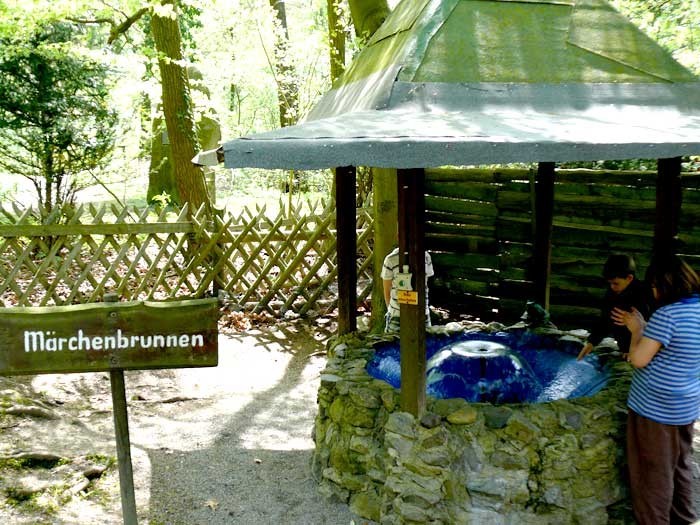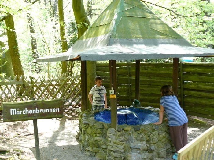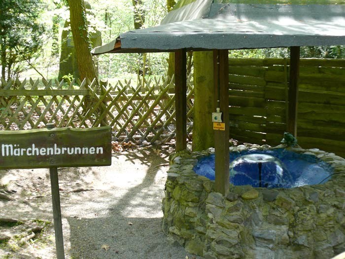 An unserem Märchenbrunnen wird das Märchen vom Froschkönig erzählt.